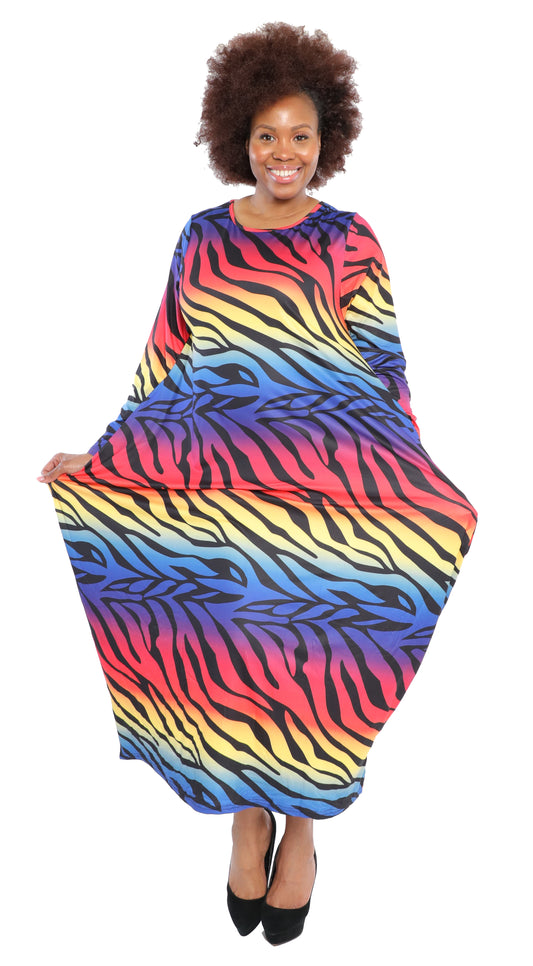 Rainbow Zebra Print Cocoon Maxi Dress with Pockets