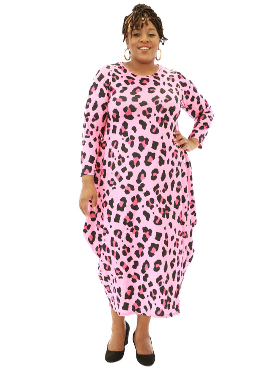 Women's Oversize Loose-Fit Blessed Pink/Green Comfortable Baggy Dress Full Sleeves With Side Pockets - One Size Fits All