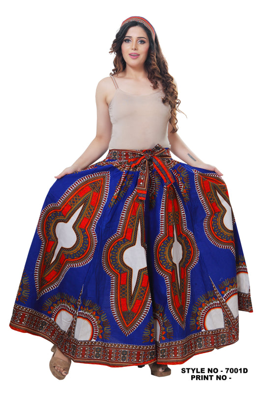 African Dashiki Print Maxi Skirt - High Waist Full Circle Skirt with Tie Belt