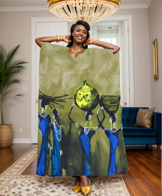 Women's Digital Print Dashiki Kaftan Dress (Style:1461)