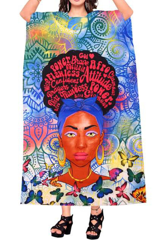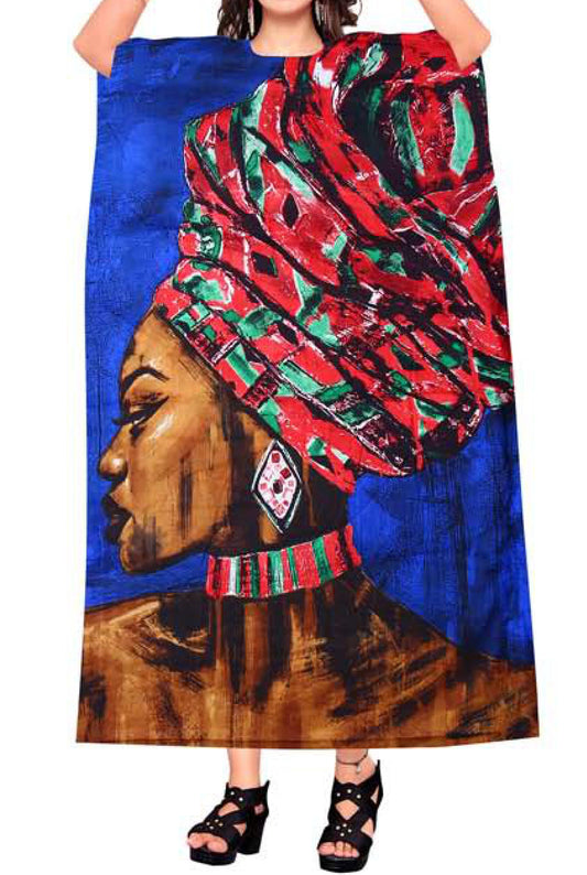Women's Digital Print Dashiki Kaftan Dress (Style:1458-B)