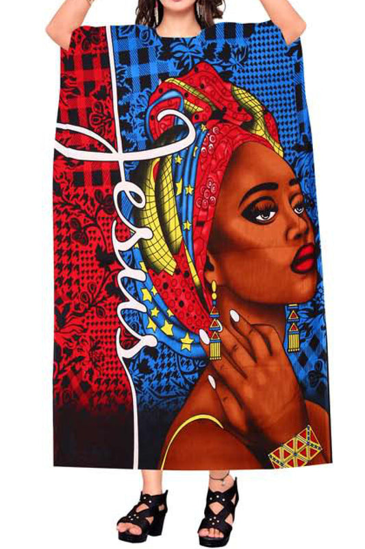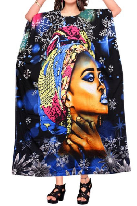 Women's Digital Print Dashiki Kaftan Dress - (Style: 1413-B)