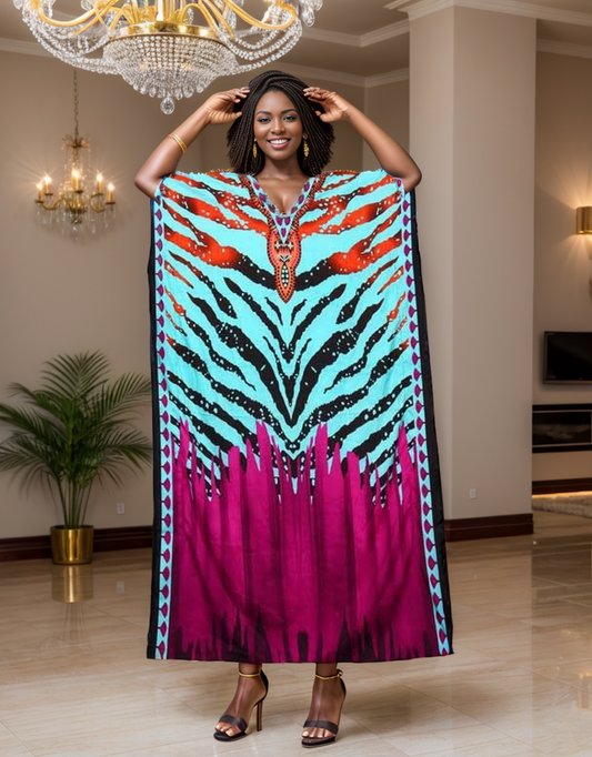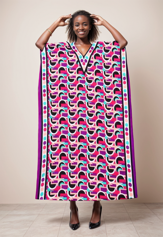 Women's Digital Print Dashiki Kaftan Dress (Style:1456-A)